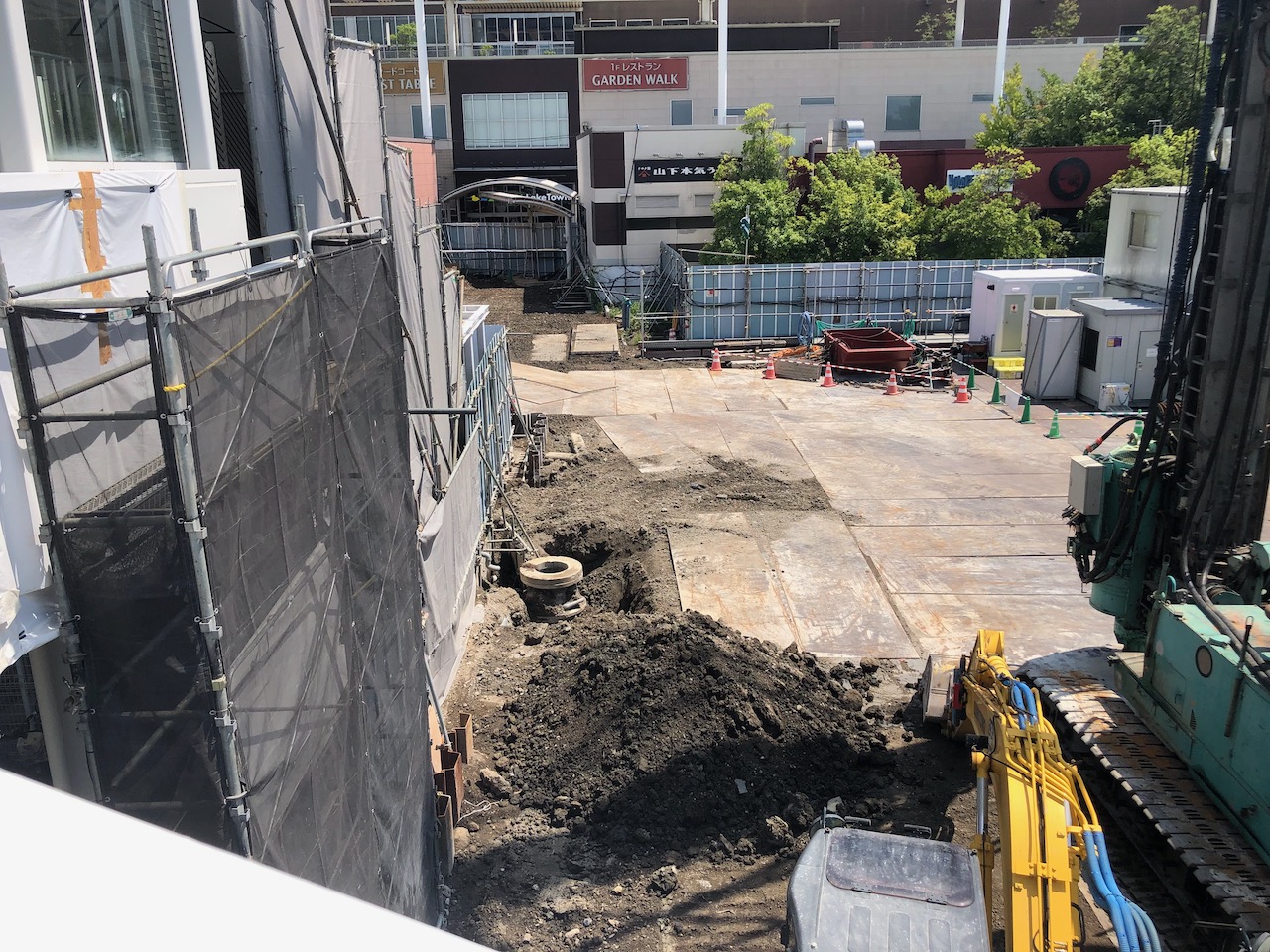 続2「イオンレイクタウンmori」で上空通路の延伸工事に杭打ち機登場〜レイクタウン全館を2階のみでぐるっと一周できちゃう工事が絶賛進行中〜気になる完成時期はいつかな