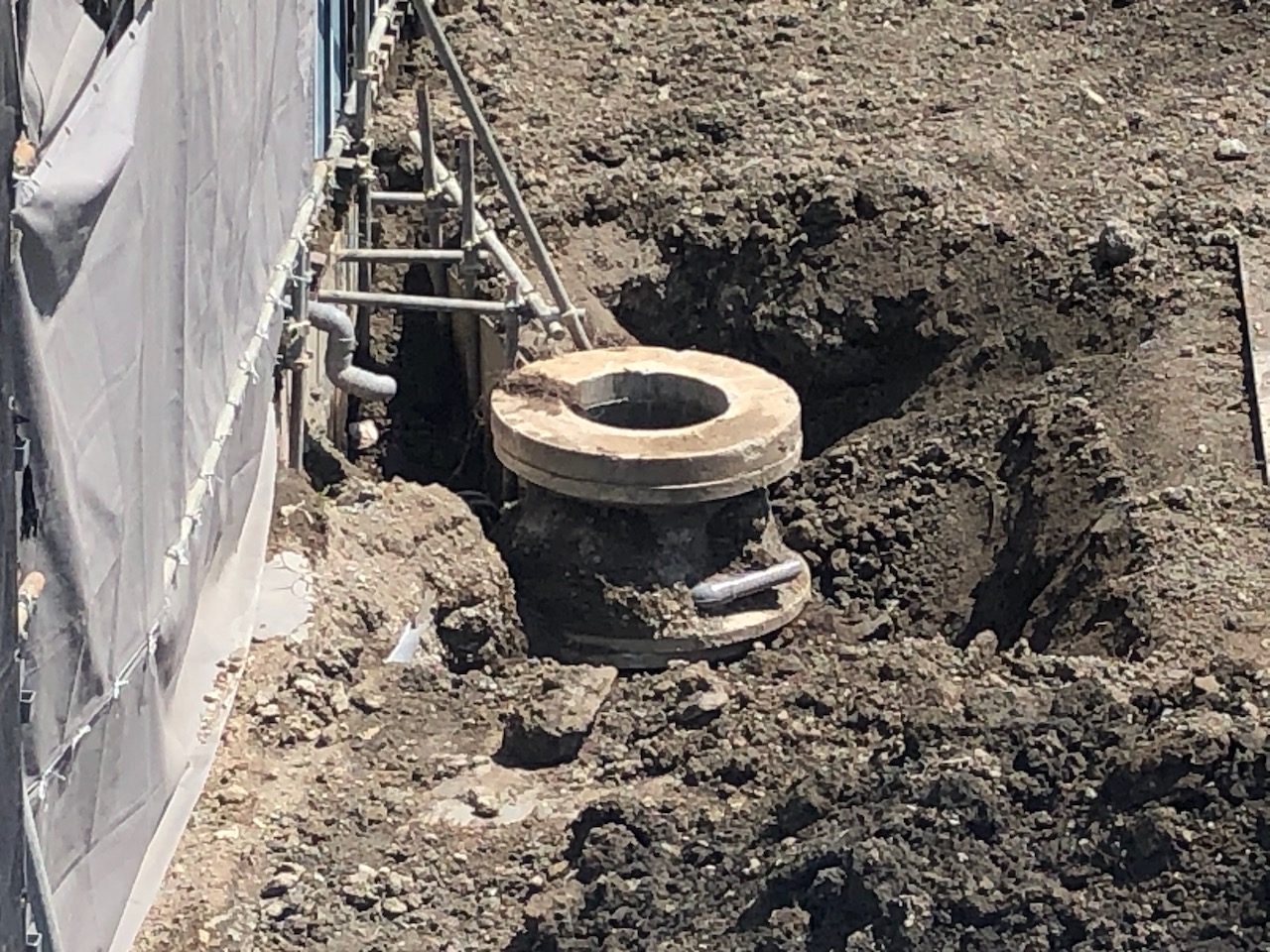 そも「杭打ち」とは何ぞやと言いますと、地下にある支持層(硬い地盤)に達するまで「支持杭」を打ち込む工程。レイクタウン界隈の支持層は、JR武蔵野線沿線でもとりわけ深く、ビルや橋梁といった建築物では50メートルほどの杭打ちが必要になります。