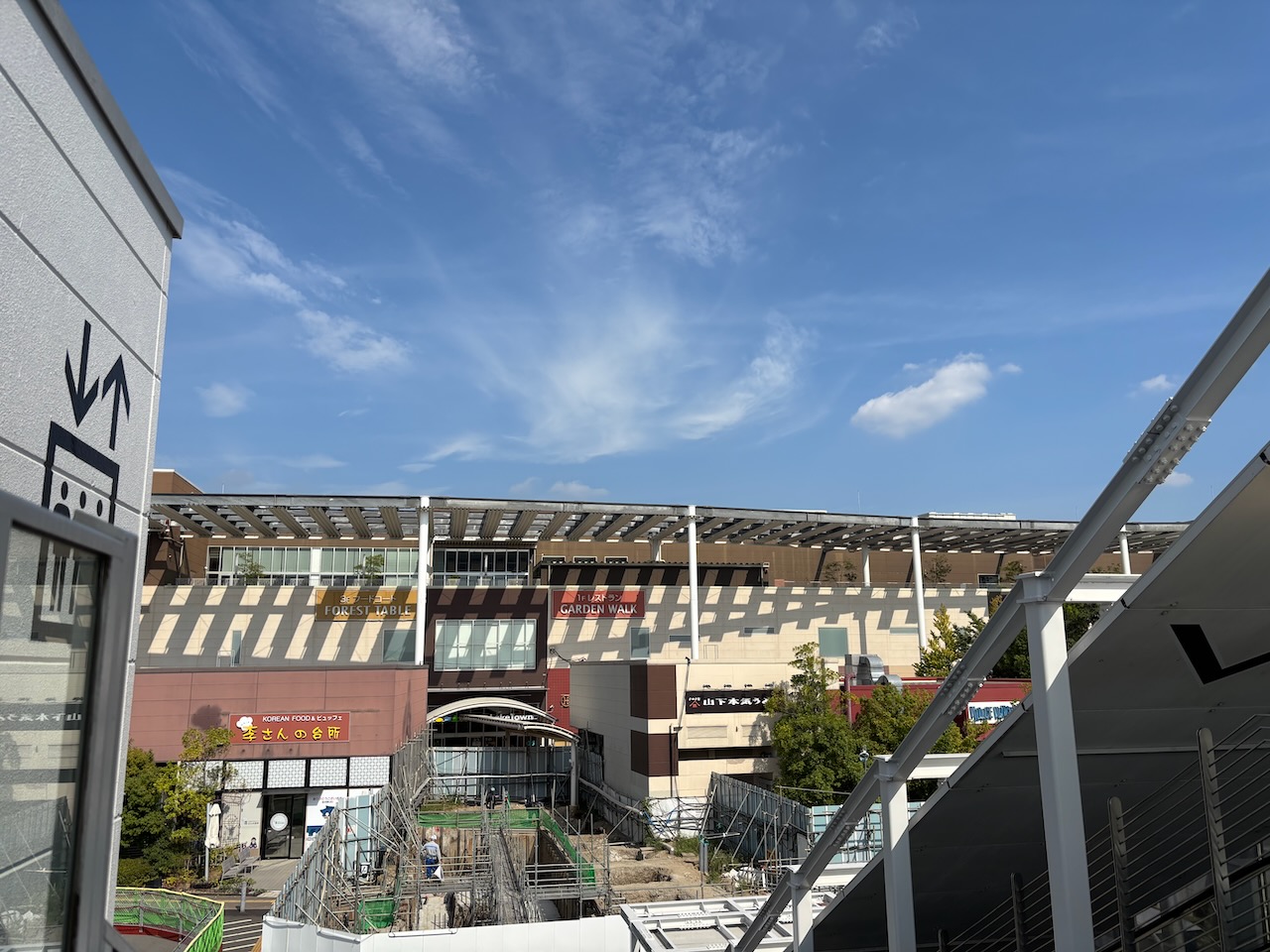 2025年3月に始まった「イオンレイクタウンmori」と「レイクタウンアウトレット」をつなぐ上空通路「フォレストブリッジ」の延伸工事。