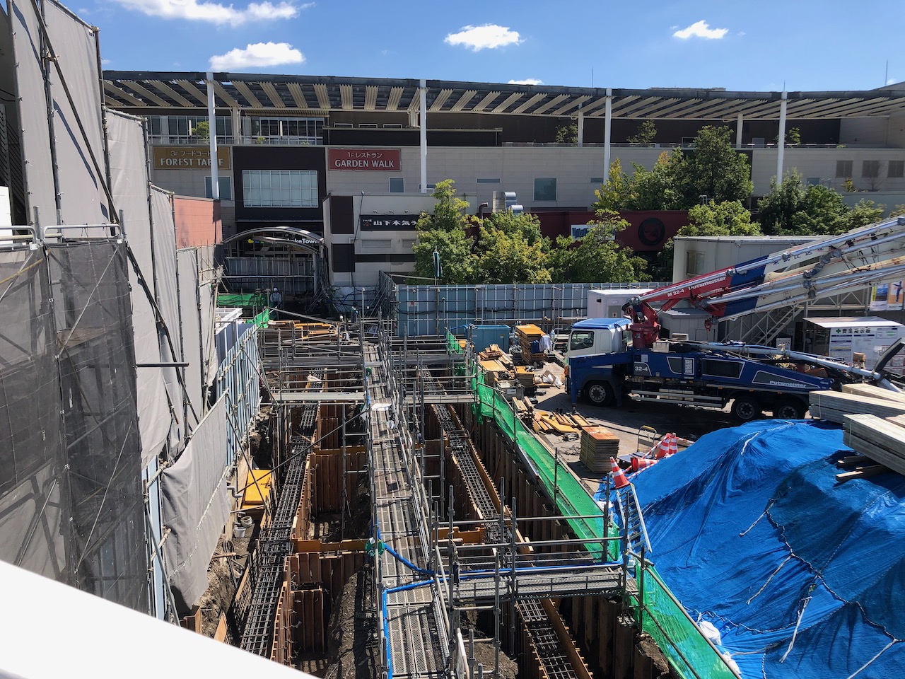 その期待を後押しするかのように、上空通路の増築部分の基礎にはコンクリートが打設され、通路のレイアウト(形状)が顕になっております!!