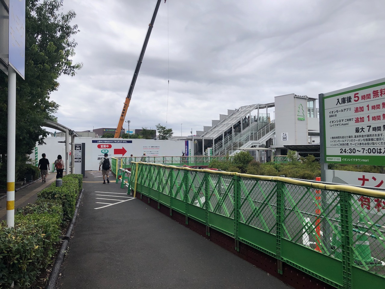 2025年3月に始まった「イオンレイクタウンmori」と「レイクタウンアウトレット」をつなぐ上空通路「フォレストブリッジ」の延伸工事。