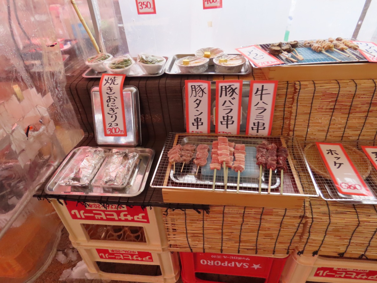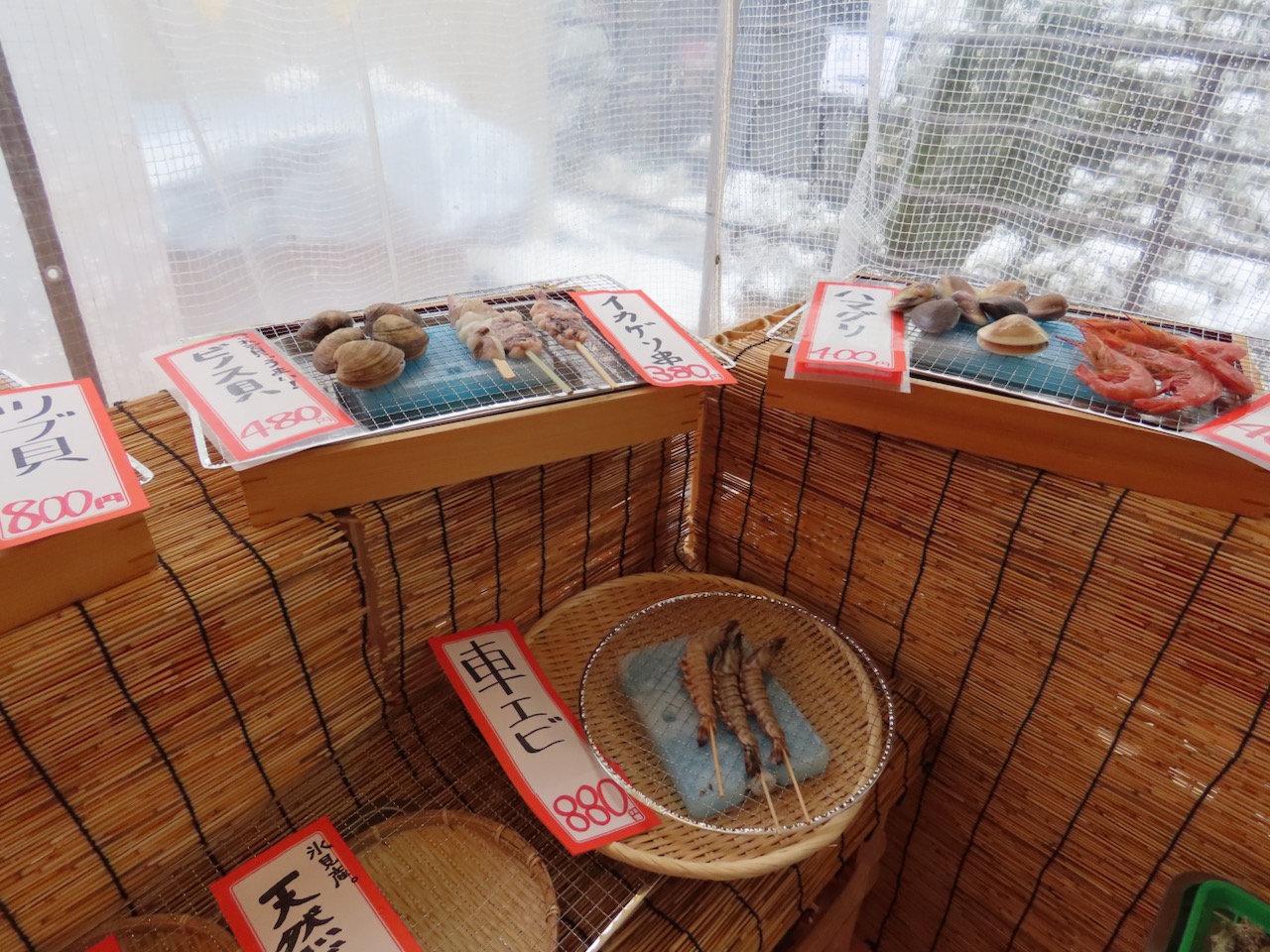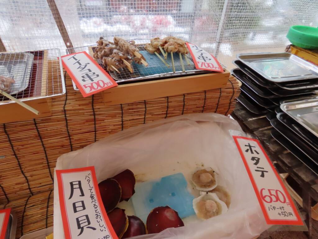 ・ホタテ/イカ串/ハマグリ/サザエ/赤エビ/ホッケ/ブリ/ノドグロ等