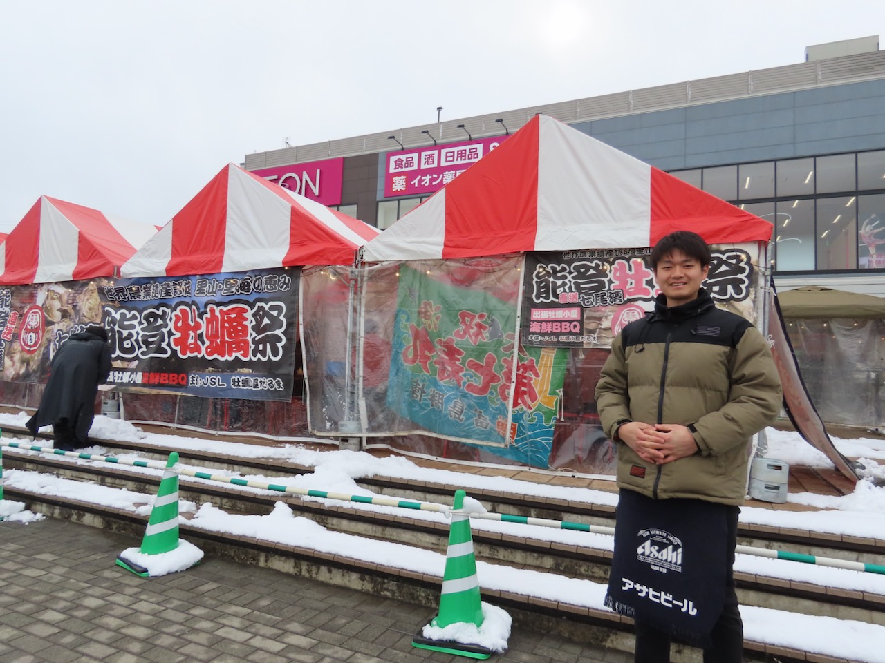 テントの中を覗いて見ると、暖かい雰囲気の中で、ぷりっぷりクリーミーな能登牡蠣を幸せに焼きまくるお客さんの姿。
