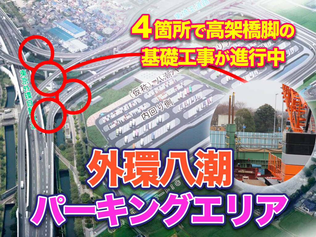 続×92「外環八潮PA」4箇所で高架橋脚の基礎工事が進行中〜エリア全域で地盤改良工事が展開〜あの真空駆動装置も再び