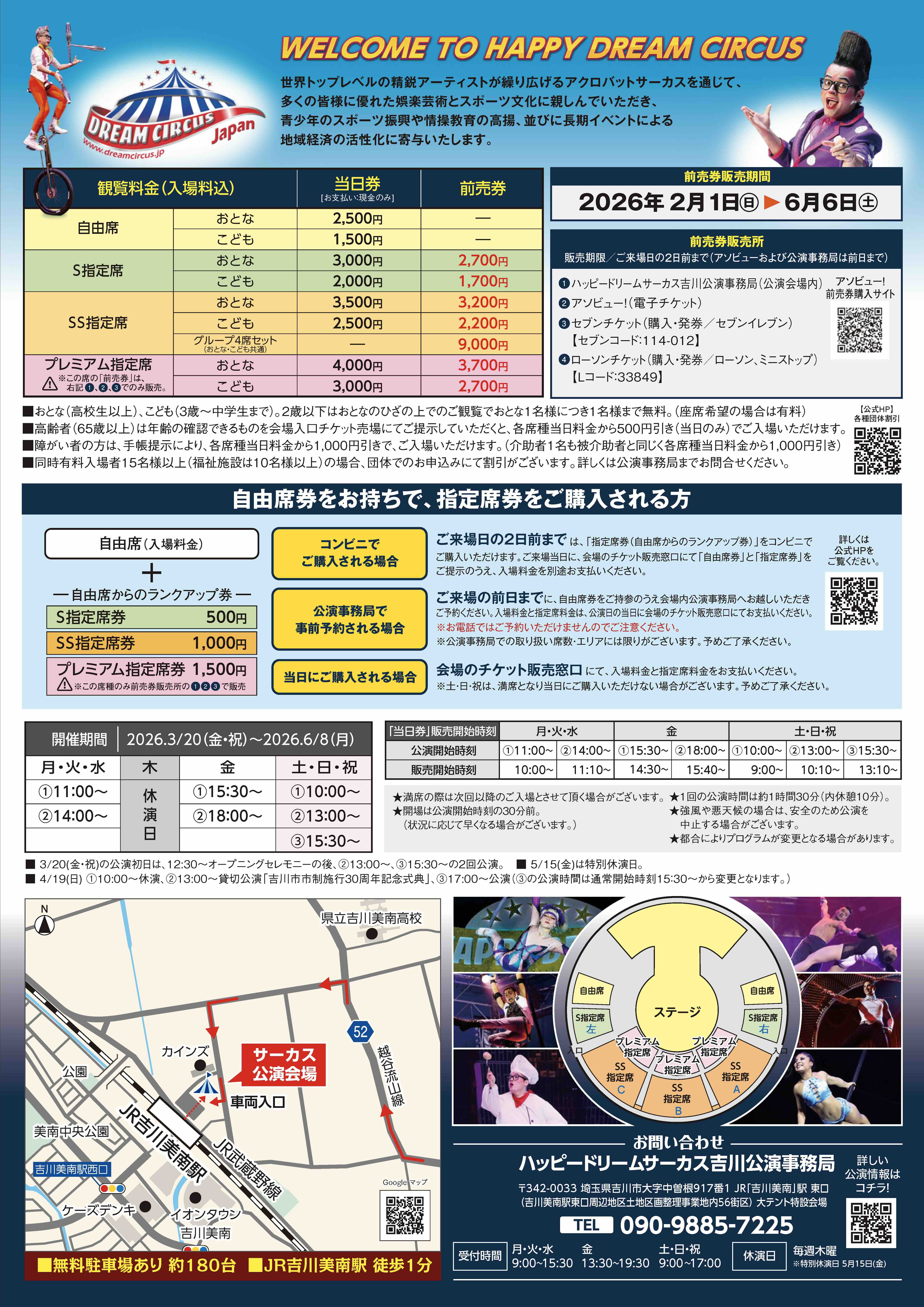 ハッピードリームサーカス吉川公演会場のチケット販売窓口で購入できます。