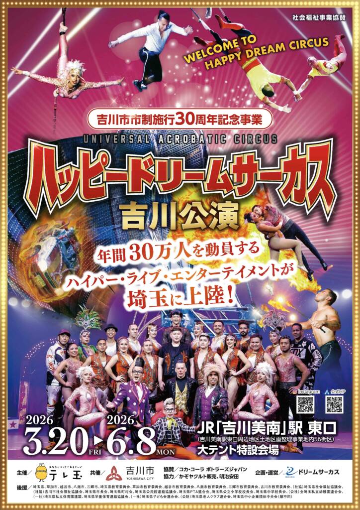 【告知】吉川美南駅東口に巨大サーカスがやってくる!「ハッピードリームサーカス吉川公演」吉川市市政施行30周年記念事業として2026年3月20日から約3ヶ月間開催